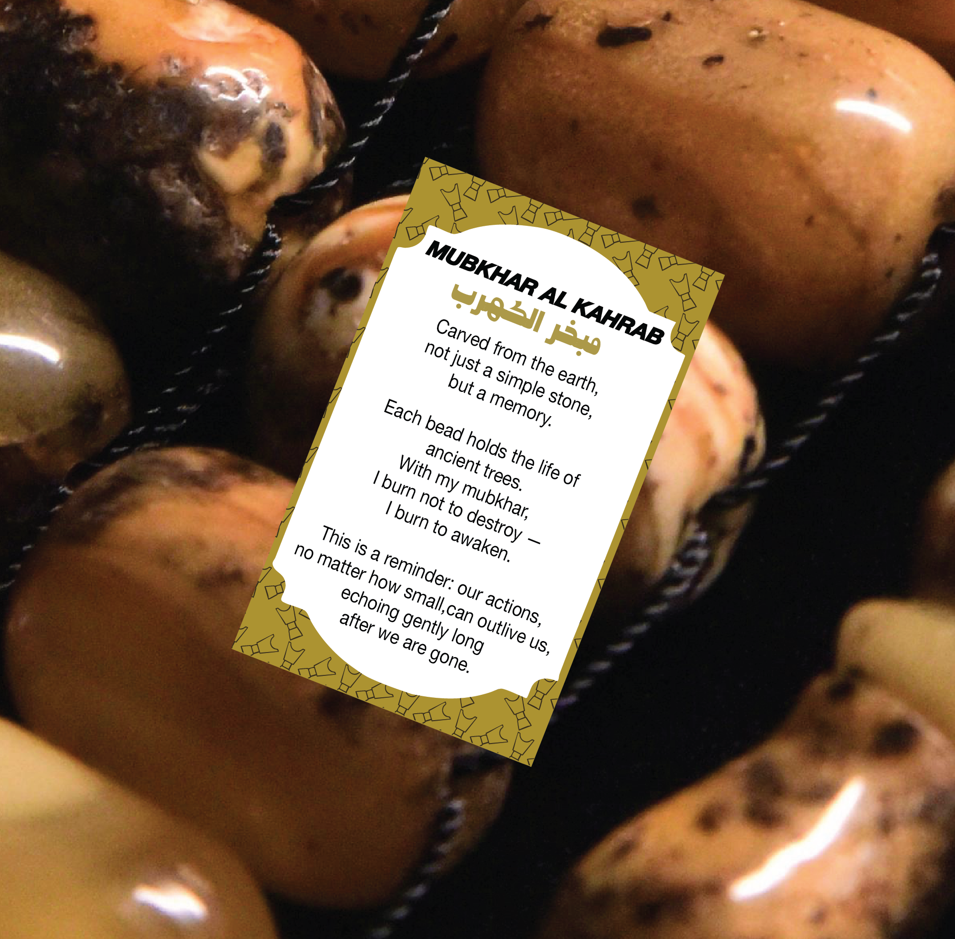 Mubkahar Al Kahrab is expertly crafted in the traditional Greek one-line style using premium kahrab (amber) with a mubkhar karkoushah.